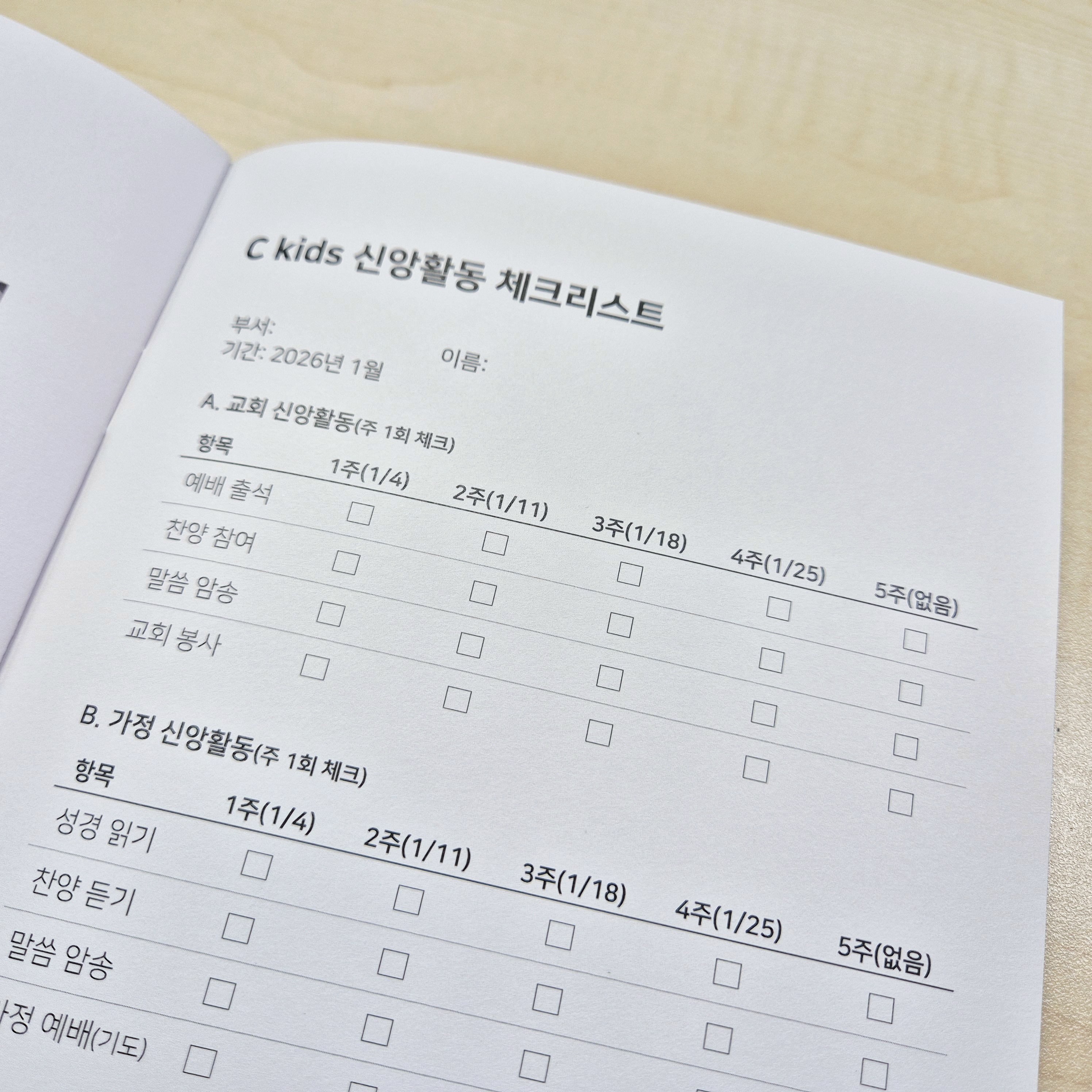 아이들이 직접 자신의 신앙활동을 점검하고 기록하는 'Ckids 신앙활동 체크리스트'